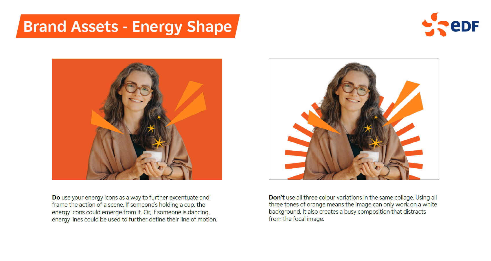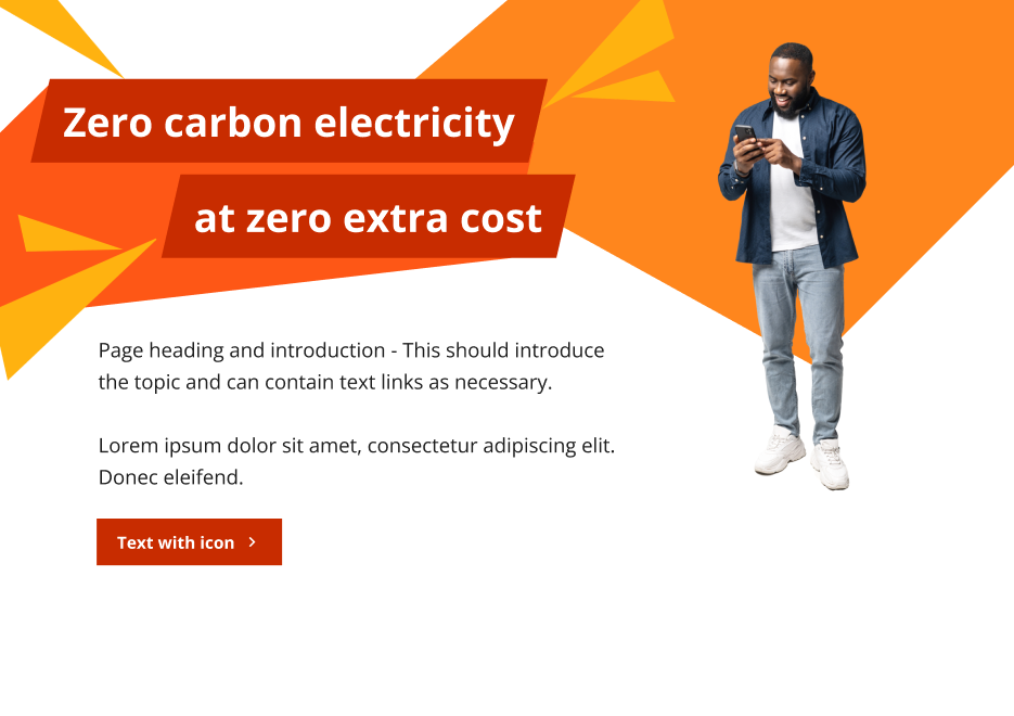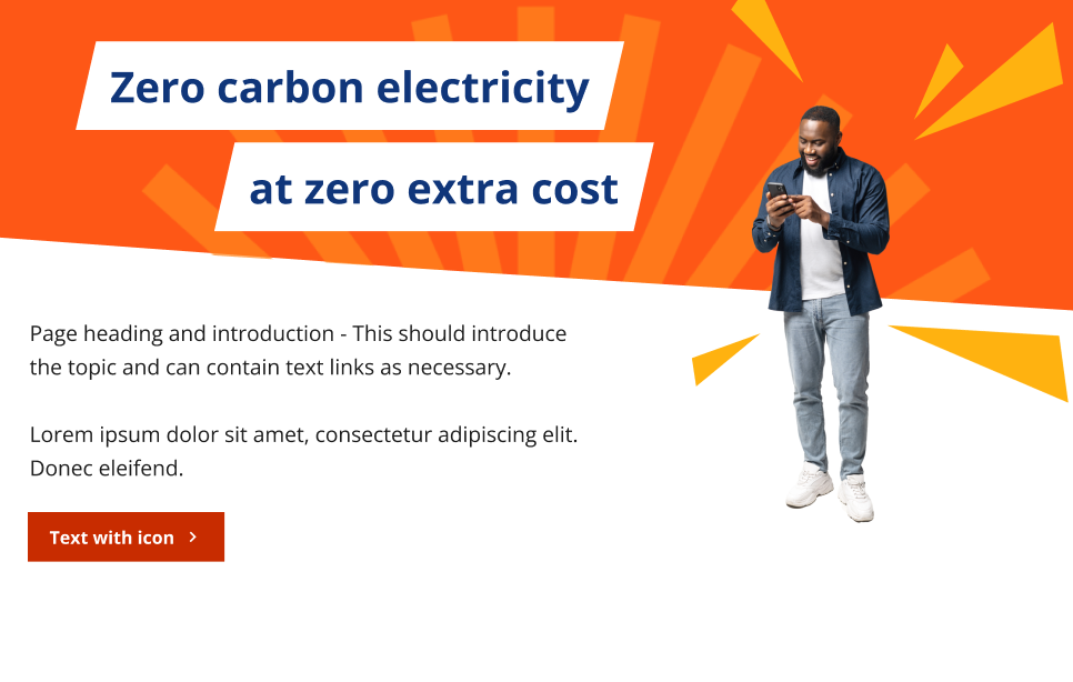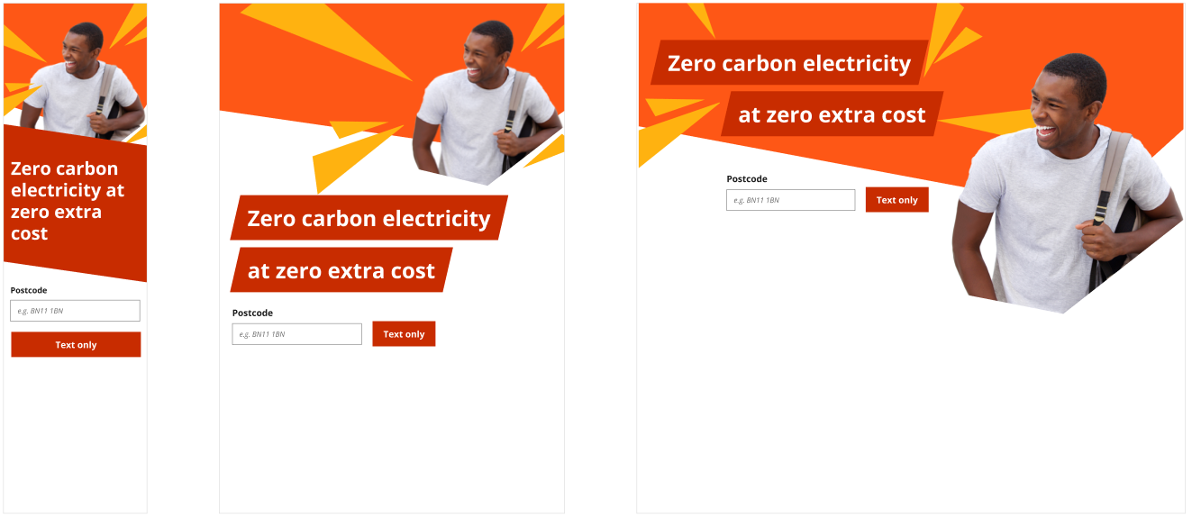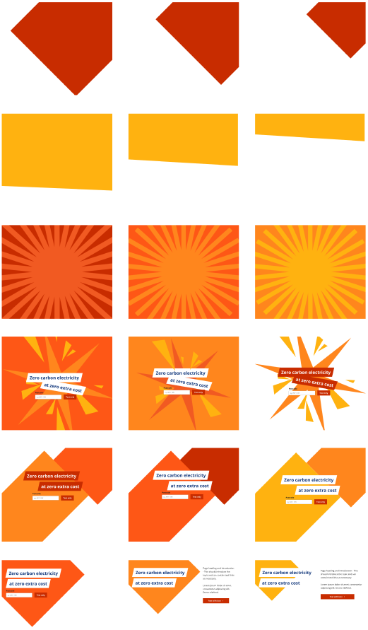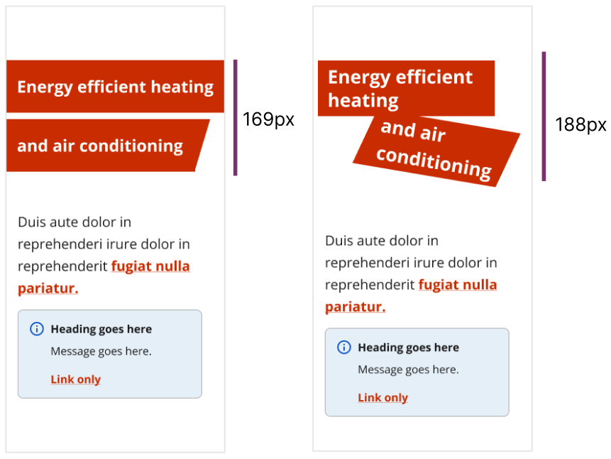 Components which work well in print don’t always translate the same way to digital. This can be due to accessibility, space or digital conventions. The block headers at angles take up a lot of space, particularly with angles and padding, and especially on mobile. These also look similar to the EDF CTA buttons, which could create confusion for the user. I tested these with the longest header we currently have to see how this would work in the worst case scenario.